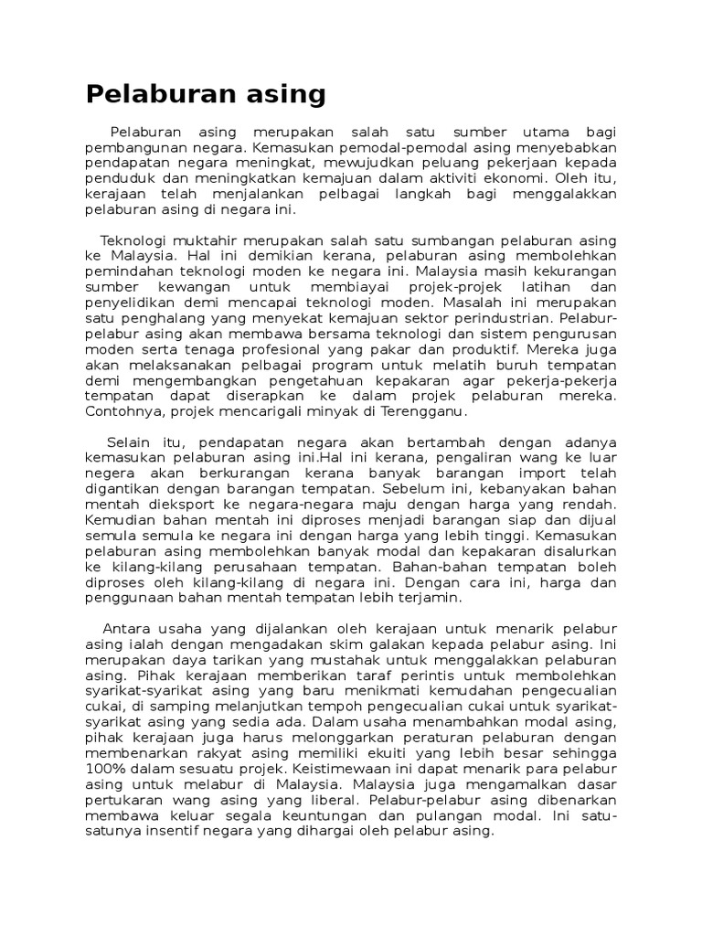 Related : Pelaburan Asing Di Malaysia / Pdf Pelaburan Langsung Asing Dan Pembangunan Seimbang Di Ncer Satu Ulasan Kritis Nooriah Yusof Academia Edu : Malaysia telah disenaraikan sebagai negara kedua yang kondusif bagi pelaburan asing di asia tenggara oleh syarikat eropah dan amerika syarikat (as), menurut laporan kajian standard chartered..